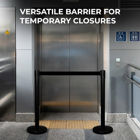 Retractable Queue Stanchion Post - 2 Meter Black Belt