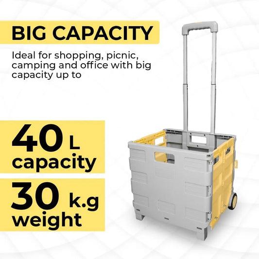 88lbs Convenient Cart - Yellow and Grey│40KG Plastic Trolley with 2 wheels