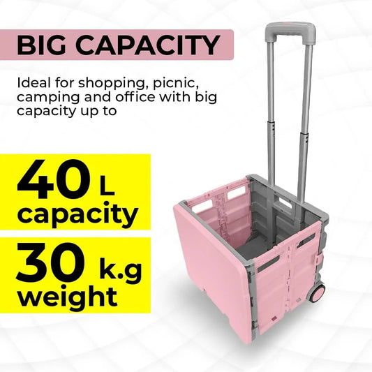 88lbs Collapsible Plastic Trolley │40KG Folding Cart with 2 Wheels
