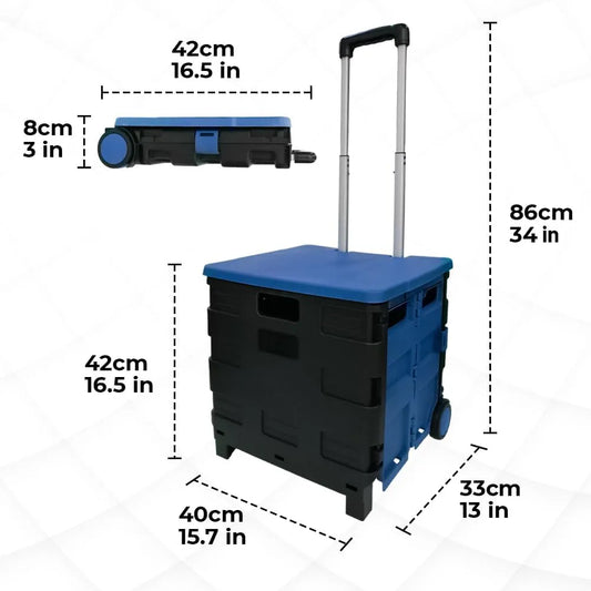 88lbs 40KG Folding Shopping Trolley with 2 Wheels - Blue and Black