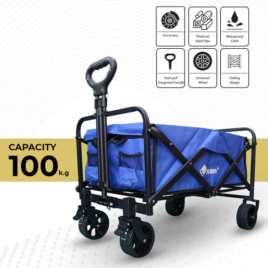 220lbs Collapsible Wagon Trolley │100kg Outdoor Cart - Blue