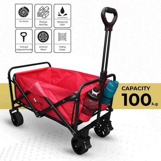 220lbs Outdoor Utility Wagon Trolley │ 100kg Outdoor Cart - Red