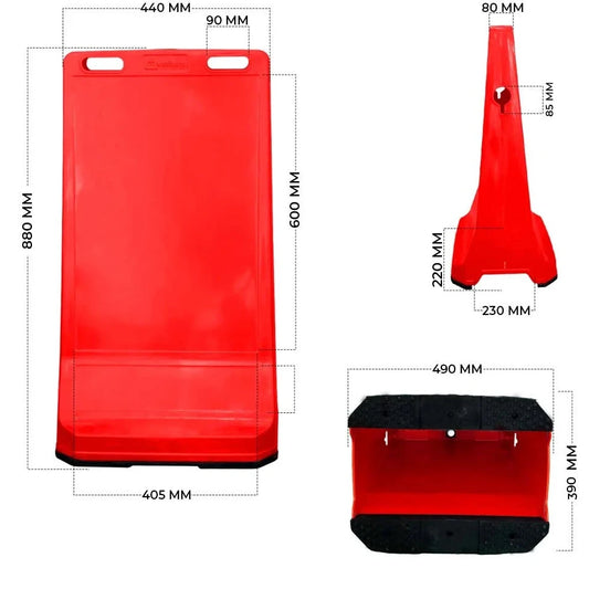 Pavement Sign Road Barrier - Red | Portable Barrier with Advertising Barges