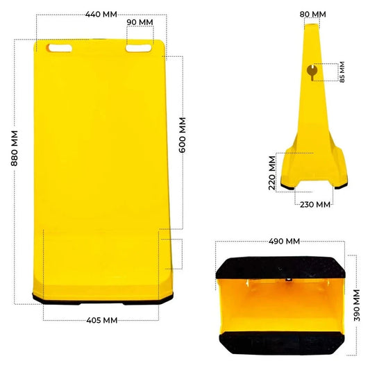 Warning Floor Sign Blank | Two-Sided Fold-Out Customized Message Sign Board - Yellow | Reflective Acrylic Lenses