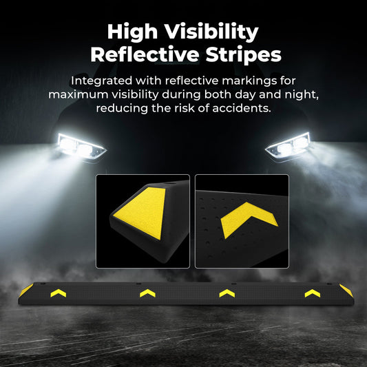 57CM Wheel Stop - Black | Reflective Heavy Duty PVC Parking Curbs