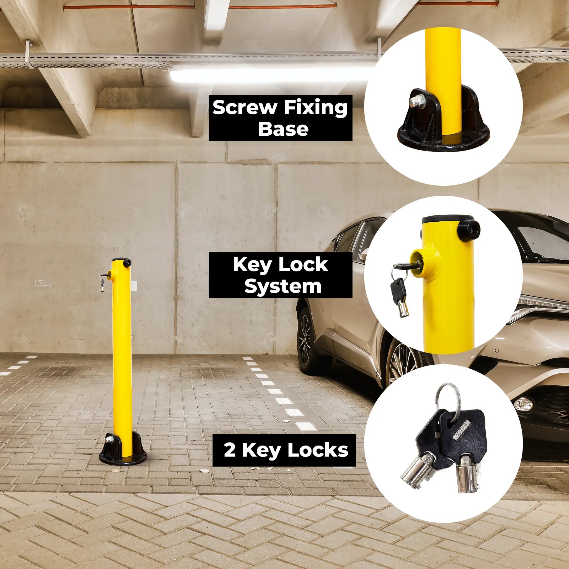 - [INBUILT KEY LOCK] With featured easy to operate key-operated lock on this lockable parking bollard prevents unauthorized parking in your parking lot.