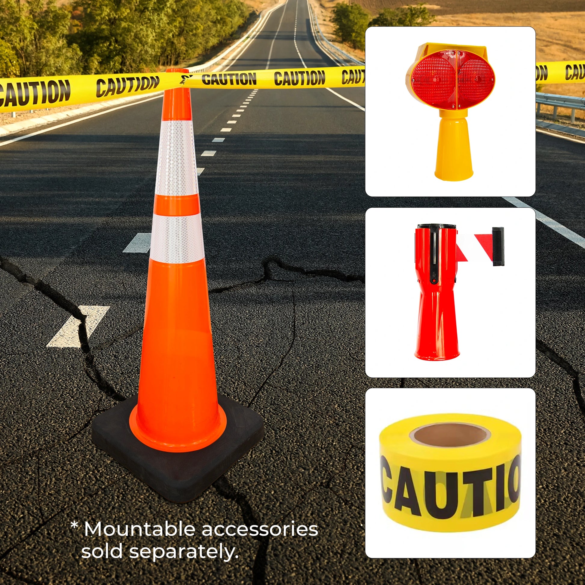 High Visibility: This 28-inch traffic cone is equipped with two reflective strips to ensure superior visibility in both daylight and low-light conditions, enhancing on-site safety.